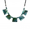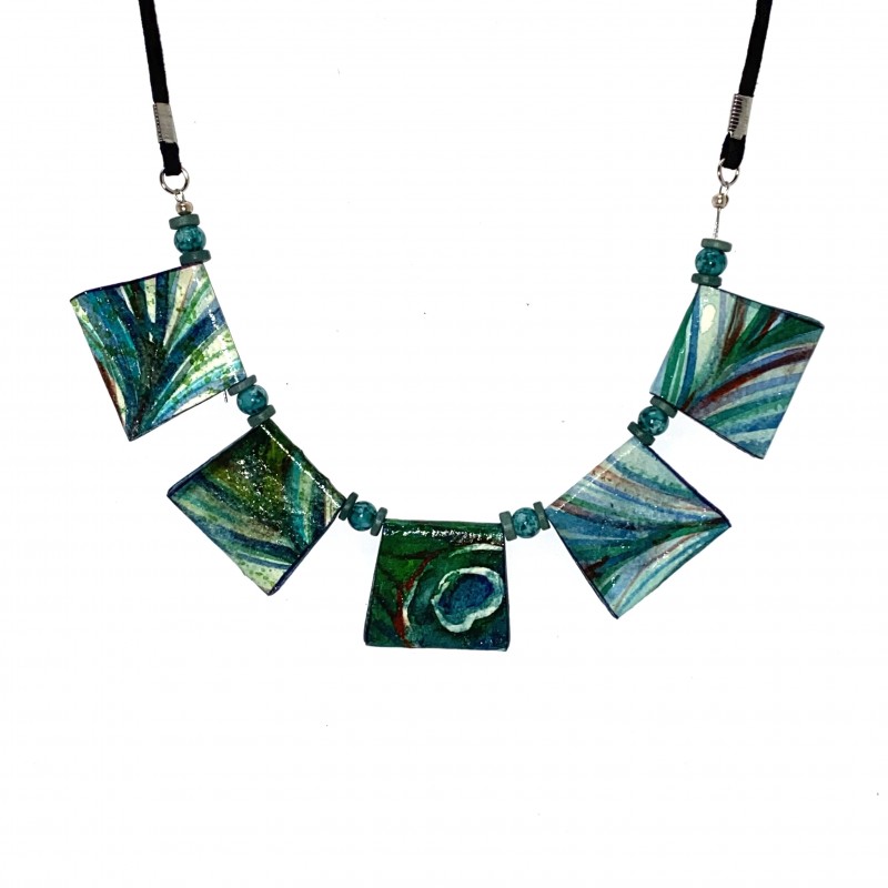 • No Closure, can just be slipped over the head. Leather lace cord adjust from 16-32". Sliding bead determines length, matching decorative bead drop in back.