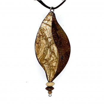 • Paper pendant is handmade of cut out layered paper , glued together, shaped, dried, sanded and finished with a polycrylic waterproof finish. The paper is recycled discarded paintings or practice. No two are alike.