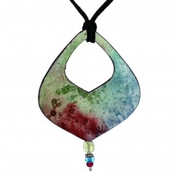 • Paper pendant is handmade of cut out layered paper , glued together, shaped, dried, sanded and finished with a polycrylic waterproof finish. The paper is recycled discarded paintings or practice. No two are alike.