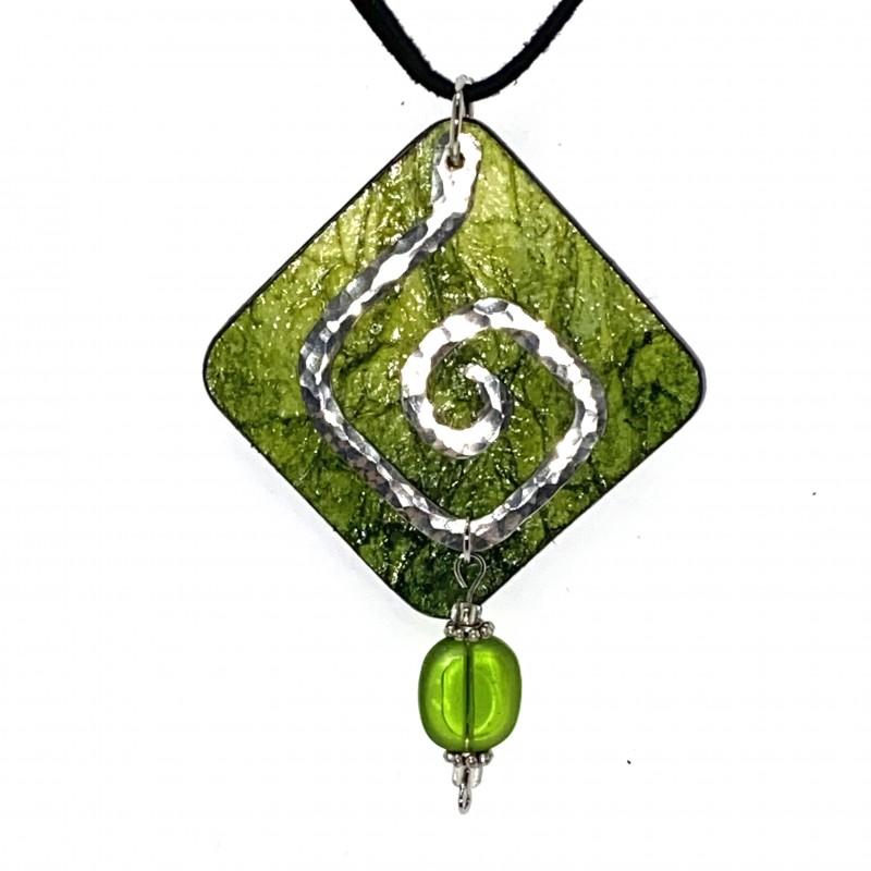 • Paper pendant is handmade of cut out layered paper , glued together, shaped, dried, sanded and finished with a polycrylic waterproof finish. The paper is recycled discarded paintings or practice. No two are alike.