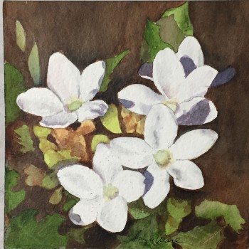 • Painted on watercolor paper then trimmed and glued to a wood panel.
